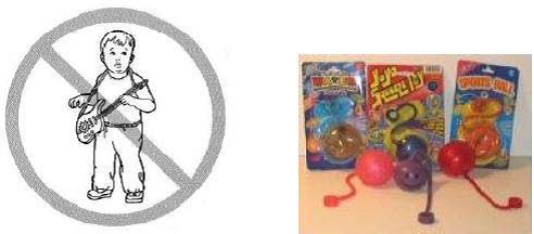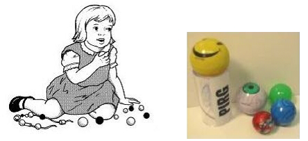 เตือนการติดคอได้ โดยเฉพาะลูกบอลหรือลูกแก้วที่มีเส้นผ่านศูนย์กลางน้อยกว่า 1.75 นิ้ว