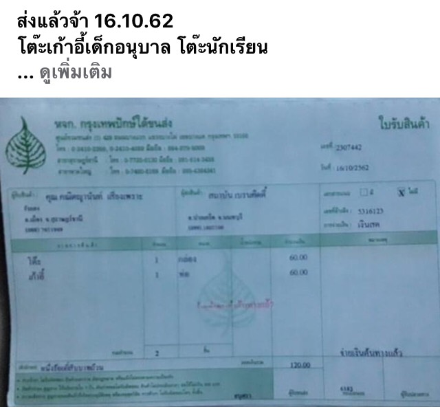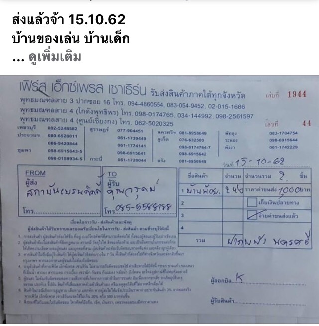 ข้อมูลการจัดส่ง และภาพตัวอย่างสินค้า ต.ค.62