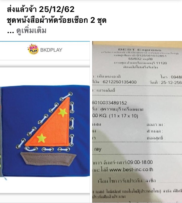 ข้อมูลการจัดส่ง และภาพตัวอย่างสินค้า ธ.ค.62