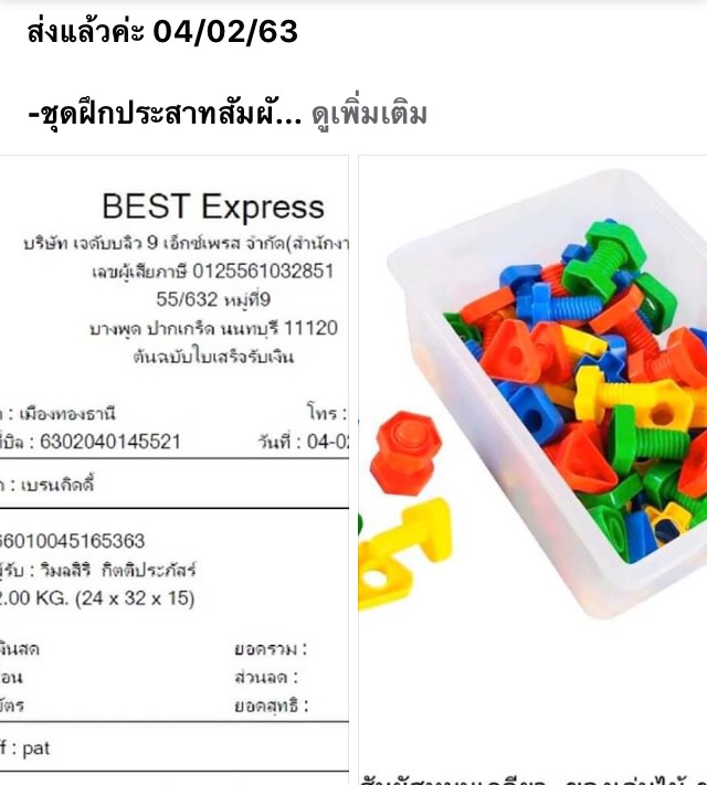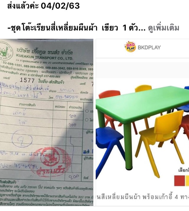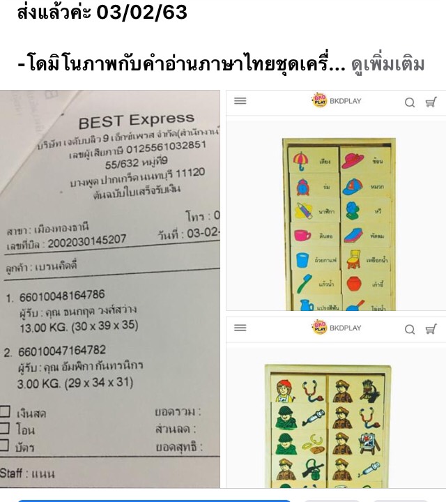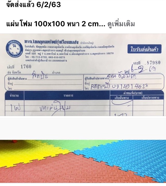 ข้อมูลการจัดส่ง และภาพตัวอย่างสินค้า ก.พ.63