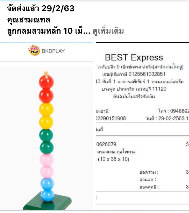 ข้อมูลการจัดส่ง และภาพตัวอย่างสินค้า มี.ค.63