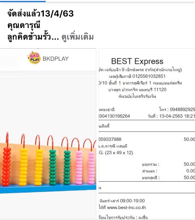 ข้อมูลการจัดส่ง และภาพตัวอย่างสินค้า เม.ย.63