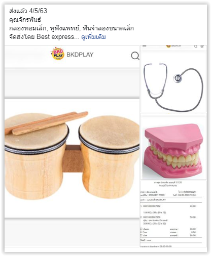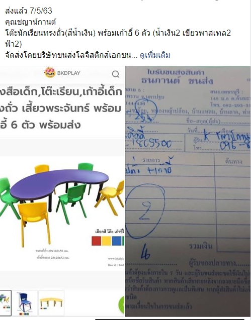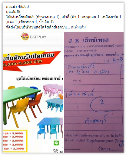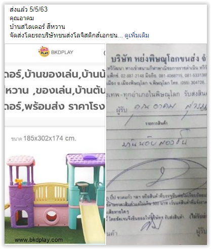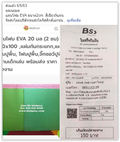 ข้อมูลการจัดส่ง และภาพตัวอย่างสินค้า พ.ค. 63